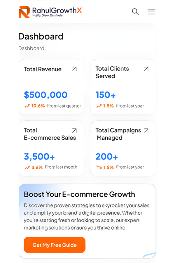 From a visual and technical standpoint, we ensured that the RahulGrowthX framework was supported by high-converting design and seamless integration. At WeGoDigitally, we developed clean, conversion-focused UI/UX systems that improved user flow and minimized friction. Landing pages were structured with clear attention hierarchy, persuasive messaging, and strategic call-to-action placement. We integrated CRM systems, automation workflows, and advanced analytics tools including GA4, conversion tracking pixels, and tag management solutions to ensure real-time performance monitoring. The final outcome was a cohesive digital growth infrastructure where branding, design, and performance marketing operated as a unified ecosystem delivering measurable business impact.
